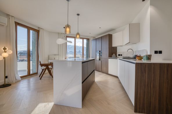 Stylish, high-end flat – terrace and stunning viewsANNECY SOTHEBY'S INTERNATIONAL REALTY is exclusively offering an exceptional apartment located on the top floor in the heart of Annecy. It offers unobstructed views of a beautiful park, the mountains and the lake, in a sought-after setting. This rare property stands out in particular for its magnificent 32 m² terrace, a true extension of the living space. Energy and climate performance Estimated amount of annual energy expenditure for standard use: between 1030€ and 1460€ (ref : 2023)