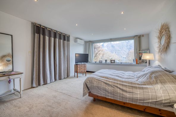 Idéalement situé à l’entrée de Sevrier, à seulement cinq minutes du centre d’Annecy, ce bien occupe un rez-de-jardin d’environ 200 m².