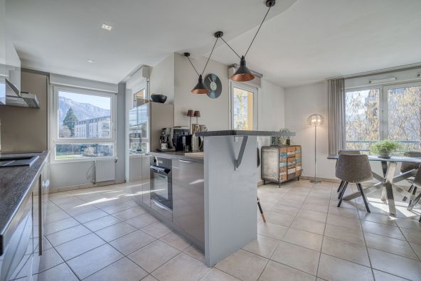 Cet élégant type 4 de 90 m² séduit par ses volumes, sa lumière et sa vue dégagée sur les montagnes sans vis-à-vis.
